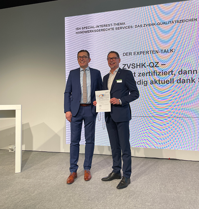 Die entsprechende Urkunde nahm André Schweizer, Vertriebsdirektor Zentraleuropa bei der Reflex Winkelmann GmbH, aus den Händen von ZVSHK-Präsident Michael Hilpert entgegen. André Schweitzer: „Die erneute Zertifizierung ist Bestätigung für unsere Arbeit und bietet unseren Kunden und Partnern zugleich jene Sicherheit, Qualität und den Service, den es im Branchenalltag braucht.“