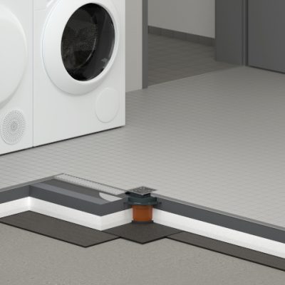 Durch die neuen Bitumenmanschetten von Dallmer müssen die Ablaufgehäuse nicht mehr in die Betonplatte eingearbeitet werden. Dadurch entfällt erhöhter Planungsaufwand und zusätzliche Arbeitsschritte wie Stemmarbeiten, das Einschalen von Aussparungen und das spätere Ausgießen. Zudem sind sie in wenigen Schritten montiert: Ein großes Plus ist die im Bauschutzdeckel integrierte Positionierhilfe. Sie ermöglicht eine einfache und schnelle Ausrichtung der montagefertigen Manschette an der Installationsstelle und definiert eine klare Trennung zwischen den ausführenden Gewerken. Durch die korrekte Auflage der Bitumenmanschette auf der Bodenplatte wird vermieden, dass Hohlräume innerhalb der Abdichtung entstehen. Der Ablaufkörper ist ebenfalls leicht zu installieren, da dieser direkt in das Abwasserrohr eingesteckt wird. Zudem überzeugt das System durch eine flexible Höhenausrichtung und einen geringen Aufbau.