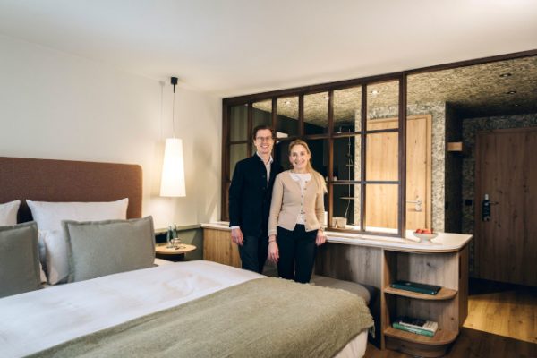 Im April 2024 übernahmen Elena Schnaas-Bruker und Simon Bruker das Haus. Ihr Ziel: behutsame Transformation zum Boutiquehotel, das den Charakter bewahrt und zugleich mit zeitgemäßem Design neue Impulse setzt – für Gäste wie für die 30 Mitarbeitenden.