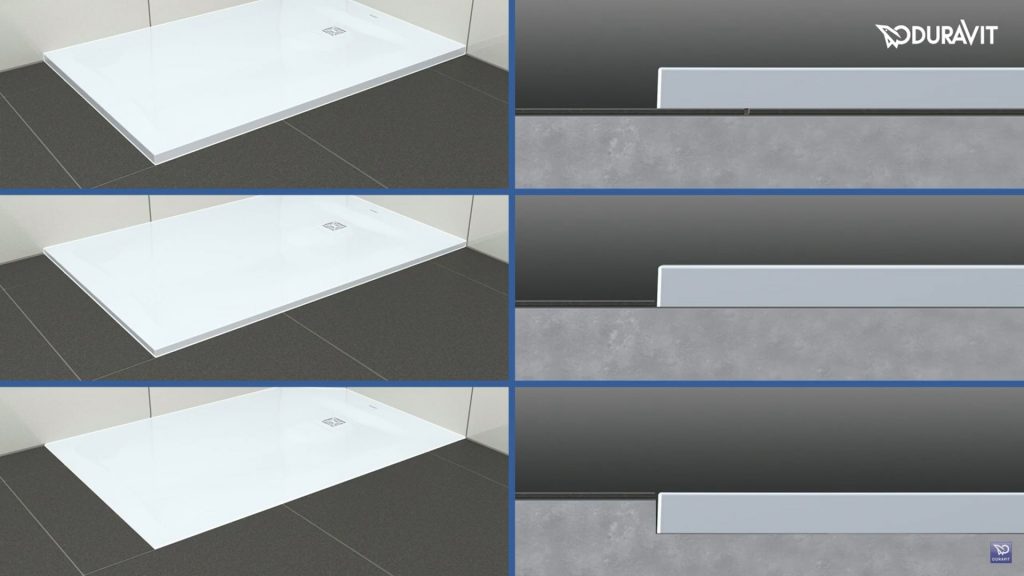 - Die Duschwanne Sustano wird zusammen mit zwei Abläufen in unterschiedlicher Bauhöhe geliefert.