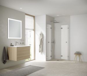Ecke, Nische, Türe – Welche Dusche passt zum Grundriss? Die baulichen Gegebenheiten im Badezimmer bestimmen die Bauform der Dusche. Während in großzügigen Neubauten oder bei umfassenden Renovierungen offene Walk-In-Duschen im Trend liegen, erfordern viele Bestandssituationen kompaktere, funktional optimierte Lösungen. Kermi Duschdesign empfiehlt häufig den klassischen Eckeinstieg – er vereint Komfort, großzügigen Lichteinfall und eine effiziente Raumausnutzung. Je nach Grundriss und Einbausituation kommen jedoch auch andere Bauformen in Frage. Die Auswahl an Duschen ist vielfältig und lässt sich individuell auf nahezu jedes Badkonzept abstimmen. Besonderes Augenmerk verdient dabei die Wahl der passenden Duschtüre – sie entscheidet über Bedienkomfort und optimale Platzausnutzung. Schwingtüren, die sich ausschließlich nach außen öffnen, bieten eine großzügige Einstiegsbreite, benötigen aber einen ausreichenden Schwenkbereich und eignen sich für größere Bäder.