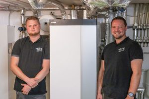 Im Zuge der Sanierung wurden alle Räume mit einer Fußbodenheizung zur Wärmeverteilung ausgestattet. Durch die Kühlfunktion der Wärmepumpe kann die Raumtemperatur im Sommer über die Fußbodenheizung gesenkt werden, was zu einem angenehmen Raumklima beiträgt. Die Wärmepumpe wurde mit einem System zur kontrollierten Wohnungslüftung mit Wärmerückgewinnung ergänzt, das direkt mit der Wärmepumpe kommuniziert. Die Lüftungsanlage sorgt dafür, dass kaum Heizenergie verloren geht, und es steigert die Effizienz der Wärmepumpe. Alle Heizungs- und Wasserleitungen im gesamten Haus haben die Sanitär- und Heizungsexperten der GebäudeTechnikSchultz GmbH mit dem modernen Versorgungsystem Geberit FlowFit ausgeführt, das einen effizienten Durchfluss ermöglicht.