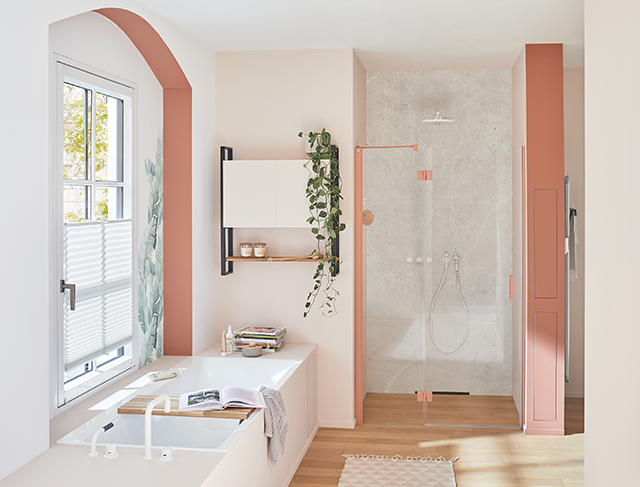 Mit der neuen Trendfarbe „Noble Pink“ des KermiEXTRA Programmes zieht Romantik ein ins Badezimmer. Pastellfarben im Badezimmer schaffen eine beruhigende Atmosphäre, in der man sich gerne entspannt und frisch macht. Sie wirken hell und freundlich und lassen sich sehr gut kombinieren. Mit dem KermiEXTRA Programm können Duschkabinen farblich an das Ambiente im Badezimmer angepasst werden. Ein zartrosa Traum entsteht mit der Sanitärfarbe „Noble Pink“ aus der Edition Nature von Kermi, die der Duschkabine einen romantischen Look verleiht.