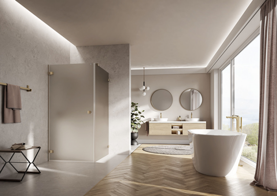 Kermi bietet jetzt eine noch größere Auswahl an verschiedenen Farbtönen an, damit das Design perfekt an das Badezimmerinterieur angepasst werden. Für mehr Textur sorgt das Strukturglas Visio Sun und das diskrete Muster fügt eine weitere Designkomponente im Bad hinzu.