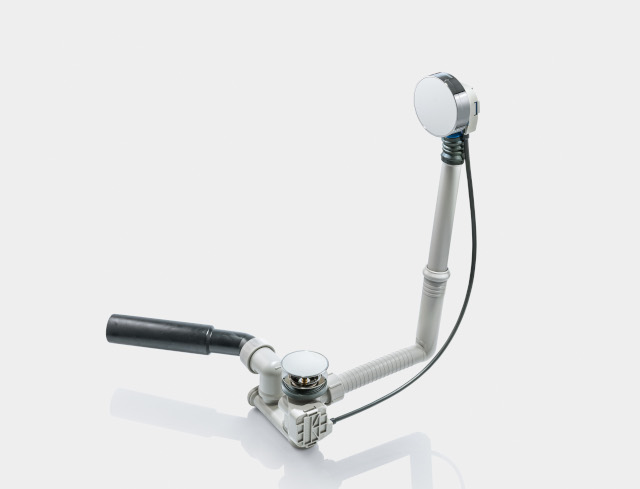 Die neuen Ablaufgarnituren ermöglichen dem Installateur und Planer, die Designsprache des gesamten Bades auch bei der Gestaltung des Wannenbereichs fortzusetzen. Optisch bestechen sie in hochglanz-verchromt, mattschwarz und in weiß, optional mit hochglanz-verchromtem Designring. Ein minimalistisches Design, das konsequent umgesetzt wird: die sichtbare Tiefe der Abläufe mit Drehbetätigung und Zulauf ist deutlich geringer. Dem Installateur bieten die neuen Ablaufgarnituren für das gesamte Produktspektrum der Badewannenabläufe Montagesicherheit durch die vereinheitlichten Komponenten: die Abläufe mit Drehbetätigung, die Abläufe mit Drehbetätigung und Zulauf sowie die Druckbetätigung PushControl verfügen über das neue Überlaufrohr in d32, den neuen Überlaufbogen mit Steckmuffe und das Ablaufventil in d40. Die Anbindung an die Wasserleitung erfolgt mit einem universellen MasterFix-Anschlusswinkel. Das Fertigbauset ist zudem rückwärtskompatibel für Abläufe mit Drehbetätigung und Abläufe mit Drehbetätigung und Zulauf. Um die Sicherheit nach der Installation zu gewährleisten, kann die gesamte Installation mit einem druckfesten Verschluss von der Mischbatterie bis zum Zulauf einer Dichtheitsprüfung mit Luft oder inerten Gasen mit bis zu 150 hPa unterzogen werden. Der verdeckte Einlauf wurde strömungstechnisch optimiert und lässt sich dank von Hand entfernbarem Strahlregler mühelos entkalken.