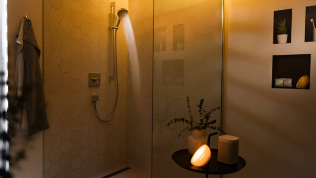 Die Wirkung von Licht auf unsere Laune und Leistungsfähigkeit ist unbestritten. Sie zeigt sich besonders deutlich im Winter, wenn die Tage kürzer und dunkler werden und man morgens nicht richtig in die Gänge kommt. Auch eine Dusche ist als Energiekick am Morgen oder Entspannungsmoment am Abend ein wahrer Stimmungsmacher. Da liegt es nahe, dass in unserem persönlichen Rückzugsort, dem Badezimmer, die richtige Lichtstimmung über unser Wohlbefinden entscheidet. Mit dem gemeinsamen Lichtpartner Philips Hue lanciert hansgrohe ein Set für ein stimmungsvolle Wohlfühlmomente, ohne großen Installations – und Kostenaufwand. Das Produktbundle besteht aus einer Rainfinity Handbrause, einer Philips Hue Go inklusive Philips Hue Bridge und fünf innovativen Duft-Tabs RainScent von hansgrohe. Dank Integration der Hue Go überträgt die hansgrohe home App passende Lichtstimmungen zu ausgewählten Duschszenario auf das smarte Licht. Auch die passenden Klänge für die individuelle Duschstimmung liefert die hansgrohe home App. So sorgt das Produktpaket für mehr Achtsamkeit und Balance im Alltag und macht das tägliche Duschritual im Handumdrehen zu einem sinnlichen Wohlfühlerlebnis.