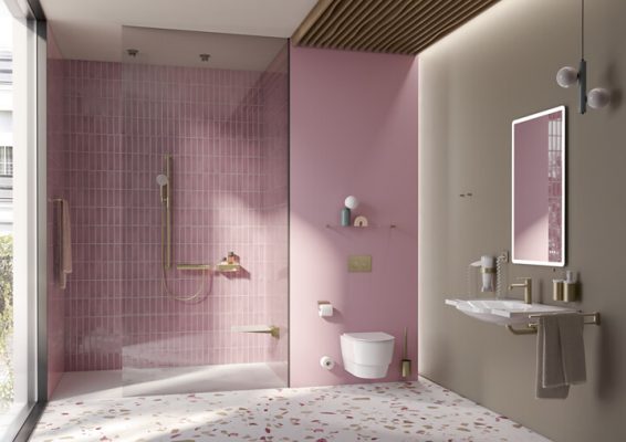 Mehr Glamour im Badezimmer: Messing, Bronze oder Gold, das sind nur einige der neuen metallischen Designoberflächen von HEWI, mit denen sich zeitgemäße Sanitärräume zu individuellen Wohlfühloasen gestalten lassen – sei es im Hotel, in repräsentativen öffentlichen Gebäuden, im Wahlleistungsbereich in Krankenhäusern oder im Privatbad. Insgesamt bietet der Hersteller für seine barrierefreien Sanitärprodukte und Accessoires vier neue Standard- und acht neue Sonderfarben, die im PVD-Verfahren gefertigt werden. Der Planungsspielraum wird damit im Badezimmer noch vielfältiger.