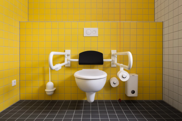 Aber auch im Detail wird Wert auf Barrierefreiheit gelegt. So entschied man sich in den Bädern für die Serie 801 von HEWI, die sich im Segment der barrierefreien Sanitärausstattung längst als Marktführer etabliert hat. „Für uns war es wichtig, dass die in der Michael-Ende-Grundschule eingesetzten Produkte ganz im Sinne des Universal Designs den Bedürfnissen aller Menschen gerecht werden und dabei höchste Qualität mit Funktionalität und ästhetischem Anspruch verbinden“, begründet Nadya Faris-Bibawi, Architektin und Geschäftsführerin des Büros NOKERA Planning, die Entscheidung für HEWI. In der Ausführung Reinweiß harmonieren die HEWI Lösungen mit den Fliesen-wänden in den Leitfarben Gelb, Grün, Blau und Rot und setzen Akzente zu den anthrazitfarbenen Bodenfliesen.