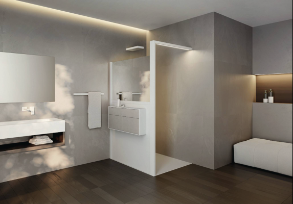 Weiteres Plus für Planung und Umsetzung: In den meisten Projekten lassen sich dank des neuartigen Rahmenprofils von Hüppe Sphere, das einen Verstellbereich von bis zu sechs bzw. acht Zentimetern zulässt, Duschplätze aufmaßfrei planen. Dies reduziert sowohl Planungs- als auch Montageaufwände spürbar – bei gleichzeitig verbesserter Planungssicherheit. Überdies verkürzen sich auch die Lieferzeiten deutlich, da zeitaufwändige, millimetergenaue Maßanfertigungen wie bei herkömmlichen Duschabtrennungen nicht nötig sind Der modulare Aufbau erleichtert schließlich zudem Transport und Installation. Denn statt großer und entsprechend schwerer Glasscheiben in einem Stück werden deutlich kleinere und leichtere Module transportiert und montiert.