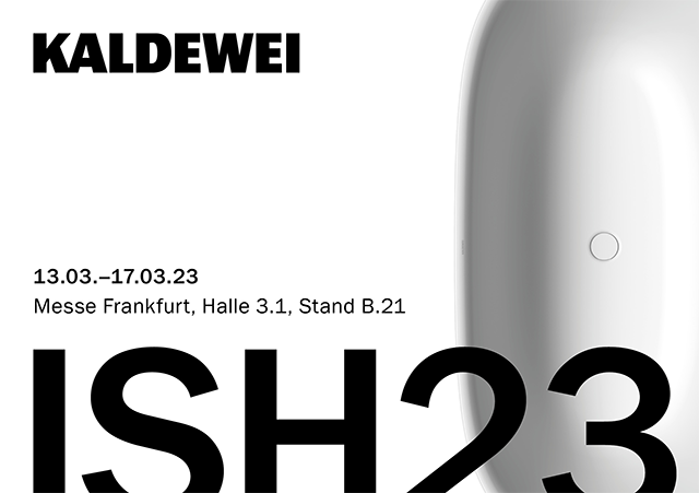 Nach vier Jahren Pause präsentiert sich Kaldewei vom 13. bis zum 17. März 2023 auf der ISH in Frankfurt. In der Halle 3.1 / Stand B 21 begrüßt der Premiumbadhersteller seine Kunden, Partner und Interessenten aus aller Welt. Revolutionäre Neuheiten und nachhaltige Badlösungen stehen im Fokus des Kaldewei Messeauftritts, der mit einer spektakulären Performance seine Gäste begeistern möchte.