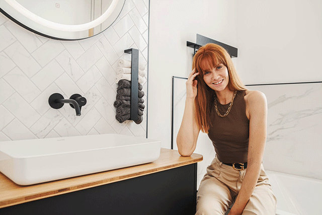 Für ihr neues Traumbad hat Sandra sich für den eckigen Waschtisch Miena mit seinem filigranen Randverlauf und die luxuriöse Wellness-Badewanne Conoduo entschieden. Beide hat sie in Eigenleistung verbaut und montiert – zwischen Modeljobs und Kundenbaustellen.