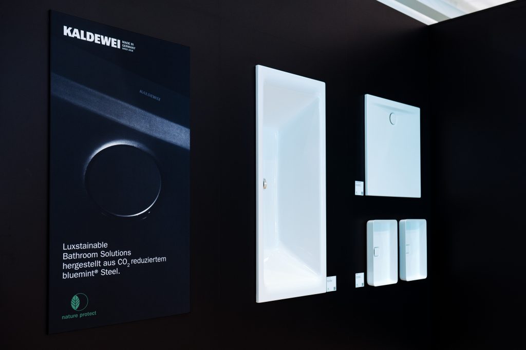 Mit dem Einsatz von bluemint® Steel von thyssenkrupp hat Kaldewei Anfang Oktober eine neue Ära in der sanitären Fertigung eingeläutet. Jetzt kommen die ersten Premium-Produkte aus dem klimafreundlichen Stahl in den Handel. 100% CO2 werden bei thyssenkrupp bei der Stahlproduktion eingespart. Berücksichtigt man die Emissionen aus der Vorkette wie Förderung und Transport der Rohstoffe weist das Endprodukt einen um 70% geringeren CO2 Fußabdruck nach dem international anerkannten Green-House-Gas-Protocol (GHG) aus. In einer limitieren Auflage werden die Waschtischschale Miena, die Badewannen Puro und Puro Duo sowie die neue Duschfläche Superplan Zero unter der Submarke KALDEWEI nature protect ab sofort über ausgewählte Händler vertrieben.