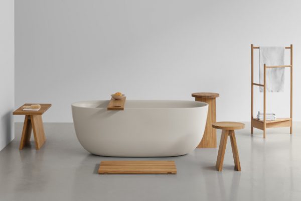 Die exklusiven Möbel des Interior-Labels e15 aus massiver europäischer Eiche sind handgefertigt und ergänzen perfekt die edle Kaldewei Badewanne aus glasiertem Titanstahl. Beide Unternehmen verbindet ihre ausgeprägte Leidenschaft für nachhaltige Materialien und Produkte.