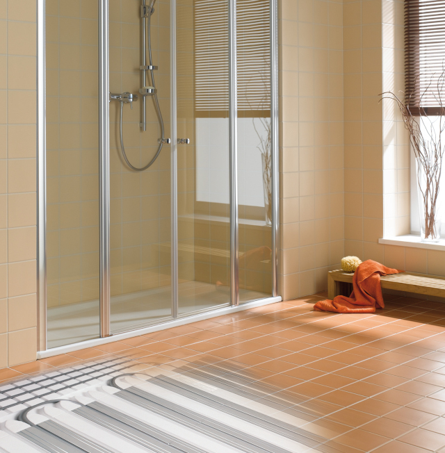 Vor allem dort, wo kein System für eine zentrale Warmwasserheizung zur Verfügung steht oder nur eine sehr geringe Aufbauhöhe möglich ist, spielen elektrische Fußbodenheizungen ihre Stärken aus. Das macht sie vor allem bei der Renovierung zu einer attraktiven Lösung. Hier steht im Kermi Programm das x-net +e11 Mattensystem zur Verfügung – im Komplettset bestehend aus selbstklebender Heizmatte, Unterputzregler und Bodenfühler sowie Schutzrohr für dessen Installation. Die Heizmatte mit einer Höhe von 3,5 mm wird direkt unter dem Bodenbelag in Fliesenkleber oder der Ausgleichsmasse eingebettet und erwärmt so einzelne Räume schnell und dezentral bzw. unabhängig vom Heizsystem. Über die Regelung können Tages- und Wochenprogramme für individuelle Heizzeiten vorgenommen werden.