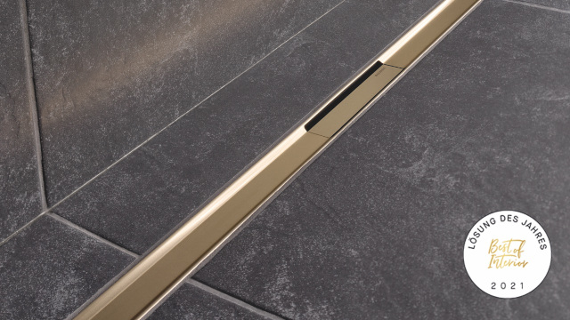 Eine bodenebene Dusche ist aus dem modernen Bad nicht mehr wegzudenken. Die Duschrinne Geberit CleanLine80 begeisterte die Juroren mit elegantem Design und cleverer Technik. Das innovative Produkt verfügt über ein in sich geschlossenes, massives Rinnenprofil. Das Profil ist aus Vollmaterial gepresst und dadurch besonders hochwertig. Das Besondere ist zudem die Auswahl unterschiedlicher Oberflächen und Farbvarianten, die bei der Gestaltung besonders viel Freiheit ermöglichen: In den Ausführungen Schwarzchrom, Edelstahl und Champagner bietet Geberit CleanLine80 stilvolles Design für die edle Badgestaltung. Die Duschrinne lässt sich wie die anderen CleanLine Modelle auf die gewünschte Länge zuschneiden. Individuelle Wünsche fürs Bad lassen sich so spielend realisieren – passend zum persönlichen Einrichtungsstil. Diese Eigenschaften überzeugten die Jury in allen Bewertungspunkten.
