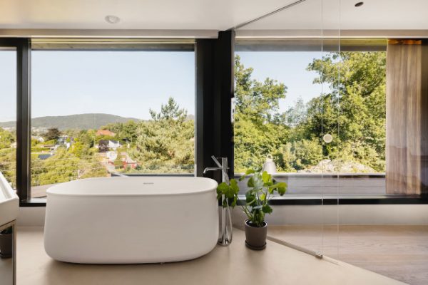 Mitten im Stadtteil Paradis in Bergen steht die Villa Schjøtt, ein Beispiel skandinavischer Architektur der 1960er-Jahre. Entworfen von dem norwegischen Architekten Geir Grung, prägen klare geometrische Linien, großzügige Glasflächen und ein fließendes Zusammenspiel von Innen- und Außenraum die Villa. Die behutsame Renovierung durch Michelsens bewahrte den ursprünglichen Charakter und passte das Gebäude an moderne Wohnstandards an. Passend zur stilvollen Einrichtung im Japandi-Stil setzten die Innenarchitekten bei der Neugestaltung der Bäder auf die Duravit Serien Zencha, ME by Starck sowie C.1.
