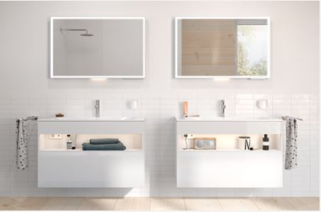 Mit der Möbelkollektion STAGELINE von KEUCO hält wohnliche Atmosphäre Einzug ins Bad. Hier stehen die Möbel im Mittelpunkt, verbinden zeitlos schönes Design mit wohnlichen Akzenten. Optisches Highlight der Serie ist ein offenes, illuminiertes Ablagefach, das Dekorationsstücke und Lieblingsprodukte gekonnt in Szene setzt. Die LED-Beleuchtung von warmweißen 3.000 Kelvin wird extern über die Raumschaltung gesteuert. Praktisches Ausstattungsdetail sind die im Fach integrierte Steckdose sowie die USB und USB-C Ladestelle.