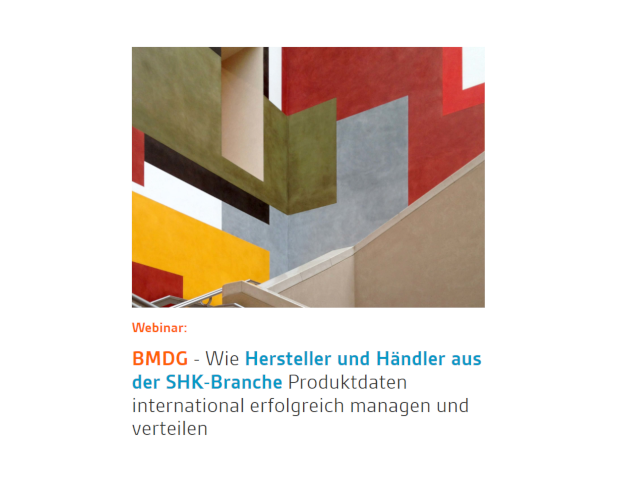 Am Mittwoch, dem 31. August 2022 un 14:00 Uhr bietet das Unternehmen my view ein Webseminar zum Thema “BMDG – Wie Hersteller und Händler aus der SHK-Branche Produktdaten international erfolgreich managen und verteilen” an. Das Seminar richtet sich nicht nur an myview Kunden*innen, sondern an alle Marketingverantwortliche*n, Vertriebler*innen und PIM-Interessierte. Alle Abteilungen und Verantwortliche sind herzlich willkommen!