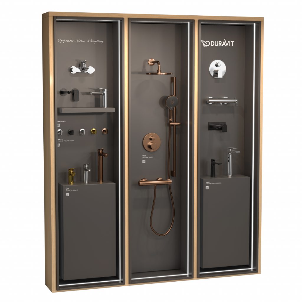 Mit den neuen Armaturendisplays bietet Duravit ein hochwertiges und optisch ansprechendes POS-Konzept für die Badausstellung, das diesen Anforderungen gerecht wird. Sie unterstreichen auch, dass Duravit eine farblich stimmige Komplettbadeinrichtung aus einer Hand ermöglicht – ohne jegliche Farbabweichungen bei Armaturen, Accessoires, Möbelgriffen oder Betätigungsplatten beim WC.