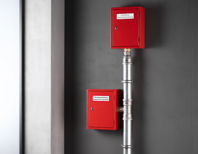 Außerdem ist die Anbindung der Entnahmeeinrichtung an die Steigleitung, aber auch der Anschluss an die Einspeiseeinrichtung der Feuerwehr oder der Be- und Entlüftungsventile mit den neuen Installationskomponenten einfach und platzsparend möglich.