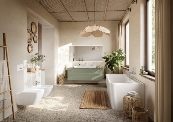 Vollkommen gelassen kommt hingegen Soft Green daher. Die feine Nuance der aktuellen Trendfarbe Grün bringt Geborgenheit und eine stille Eleganz ins Badezimmer – gemacht, um die Seele baumeln zu lassen und Energie zu tanken. Sanft und zurückhaltend harmoniert Soft Green wunderschön mit hellem Holz, reinem Weiß und cremigen Beige- und Greigetönen.