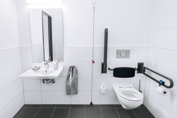 Jedes Einzelzimmer verfügt über ein eigenes, privates Bad. Die barrierefreien Sanitärlösungen von Duravit sind speziell für Menschen mit Behinderungen konzipiert, um die Selbstständigkeit im Alltag zu fördern. So ermöglichen die unterfahrbaren Waschtische Starck 3 Vital durch ihr großzügiges Platzangebot eine komfortable Nutzung bei eingeschränkter Mobilität. Das Wand-WC Vital aus der Serie Architec mit HygieneGlaze erhöht den Hygienestandard und sorgt durch seine tiefe Ausladung für mehr Zugänglichkeit.