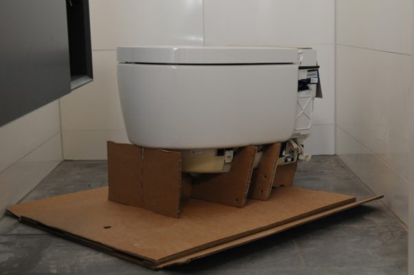 Die Installation des AquaClean Dusch-WCs gestaltete sich zügig und unkompliziert, da die Wasser- und Stromanschlüsse in der Keramik leicht zugänglich sind. Nach der Positionierung mit der Verpackung als Einbauhilfe ist für die Befestigung kein Spezialwerkzeug erforderlich. „Die Installation verlief dank mitgelieferter Montagehilfe reibungslos“, betont David Moog.