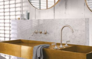 Das Portfolio von Dornbracht umfasst metallische Oberflächen in Chrom und Platin, die jeweils in gebürsteter und glänzender Variante erhältlich sind. Wie sämtliche Finishes des Herstellers zeichnen sie sich durch Perfektion in allen Dimensionen aus und bereichern mit ihrer Farbtiefe, Intensität und Brillanz unterschiedlichste Badarchitekturen. Zugleich garantiert eine präzise Fertigung mit einem hohen Anteil manueller Feinarbeit ihre Langlebigkeit und Beständigkeit. Die Farbfamilien reichen dabei von Metallic- bis hin zu Goldtönen. Individuelle Finishes werden sogar ab Losgröße eins realisiert. Dieses weitreichende Spektrum verfügbarer Oberflächen eröffnet große Freiheiten beim Umsetzen persönlicher Visionen fürs eigene Bad.